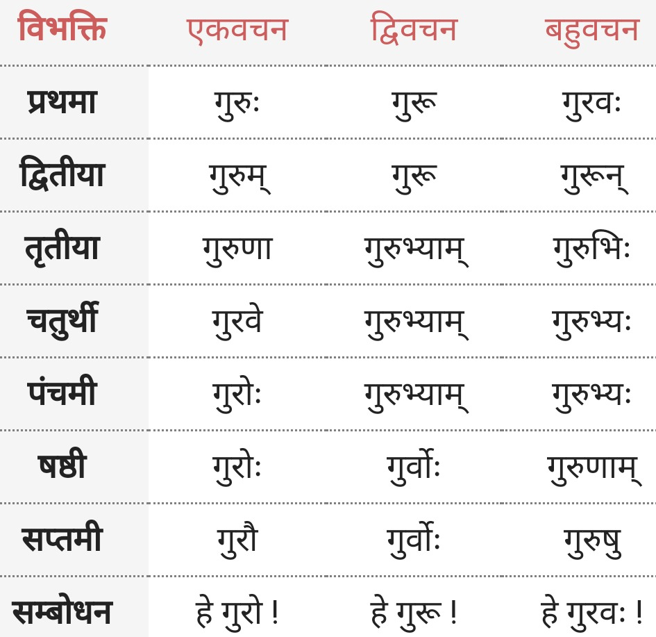 गुरु: | उ-कारान्त पुल्लिङ्ग्
