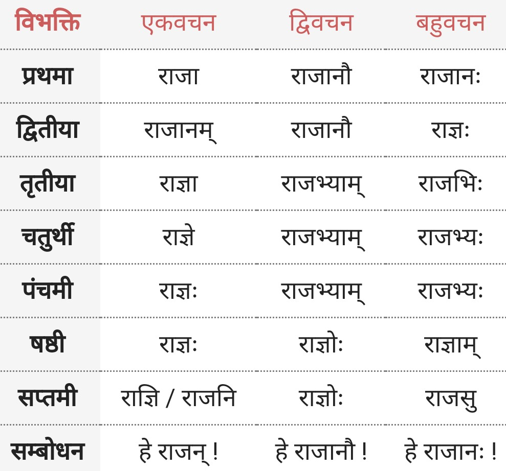 राजा: | आ-कारान्त पुल्लिङ्ग्