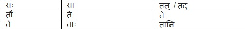 | एक वचन – Ek vachan – – Singular | सः | सा | तत् / तद् |