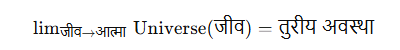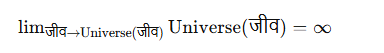 Problem comes when instead of approaching the Atman, the Jiva tries to approach the Universe (which itself is a function) thereby setting no limits and enter the endless loop. આને ગણિતમાં “divergence” અથવા “no finite limit”. આને ગણિતમાં ખૂબ સુંદર રીતે બતાવી શકાય છે. અહીં પરિસ્થિતિ એવી છે: સતત બદલાતી, અસ્થિર, અનંત પ્રક્રિયામાં ફસાઈ જાય છે. જીવ (x / जीव) આત્મા (आत्मा) તરફ જવાને બદલે બહારના બ્રહ્માંડ (f(x)) માં જ ફસાય છે. એટલે તે કોઈ નિશ્ચિત સત્ય (limit L) સુધી પહોંચતો નથી